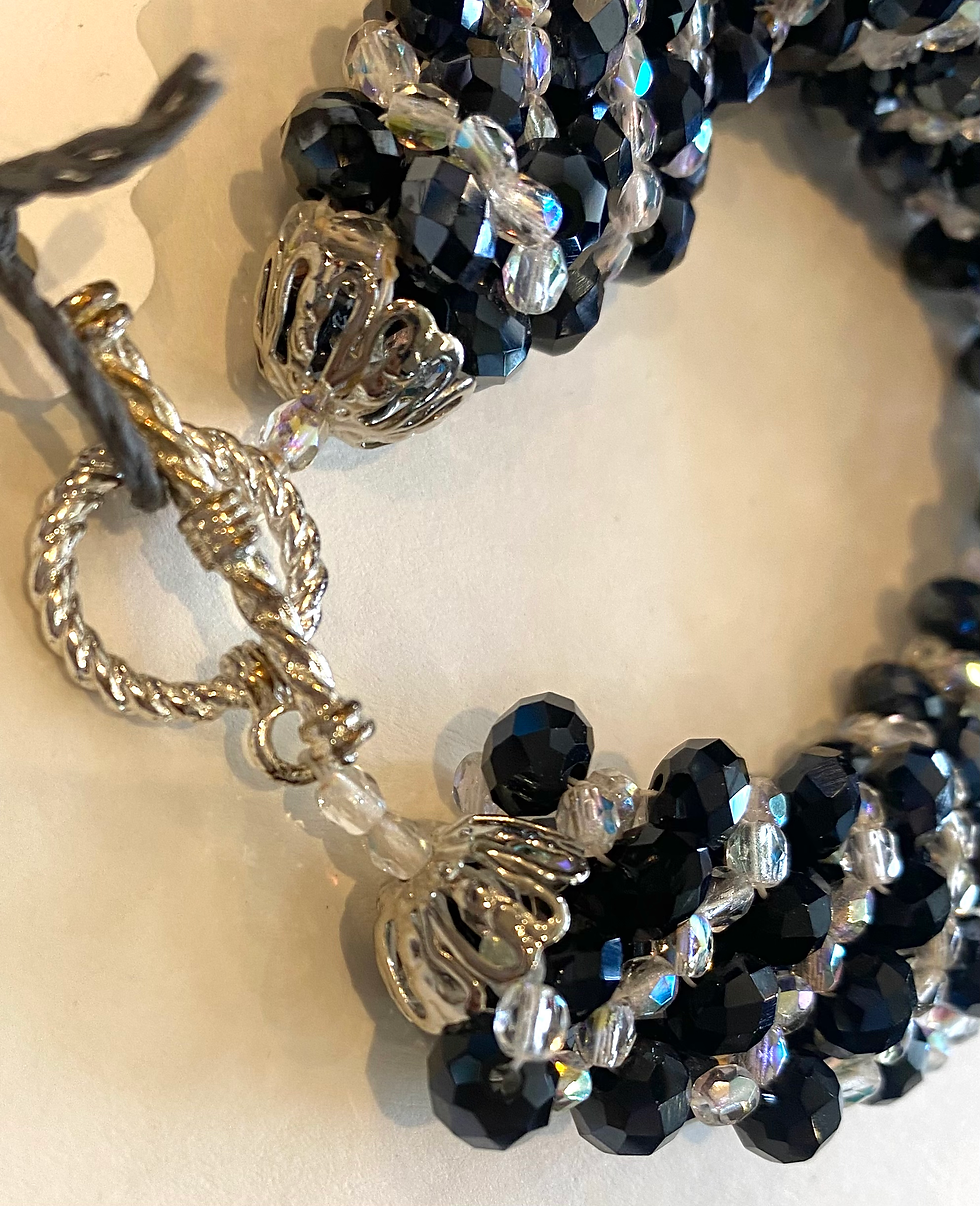 Dark Navy Blue & Clear Swarovski Crystal Braided Bracelet 8” circumference